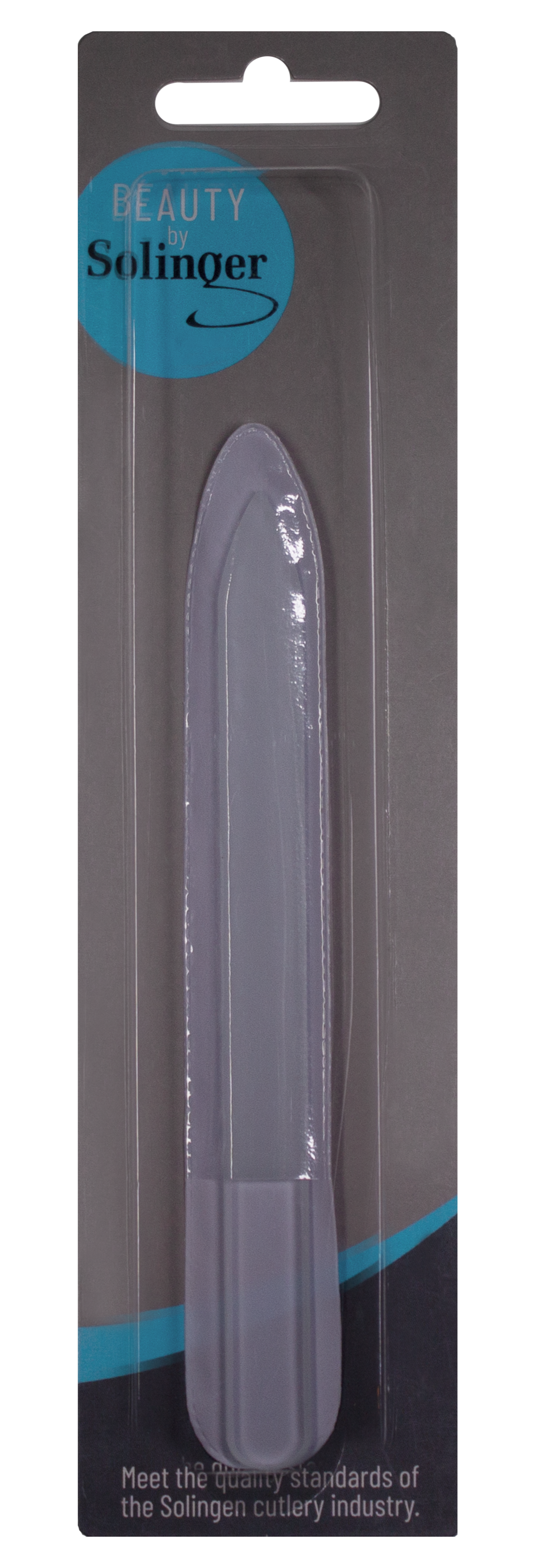 Saffiernagelvijl 14 cm is een onmisbaar hulpmiddel voor je manicure- en pedicureverzorging. Gemaakt van hoogwaardig gehard glas met bewerkt schuurvlak, zorgt dit product voor nauwkeurige en comfortabele verzorging. Hij is geschikt voor zowel vinger- als teennagels, is na gebruik afwasbaar en is zeer slijtvast. Vijl de nagel van buiten naar binnentoe. Tip: Zeer geschikt voor het extra fijn afwerken van de nagel na het gebruik van bijvoorbeeld een 'Beauty by Solinger' nagelschaar of nageltang