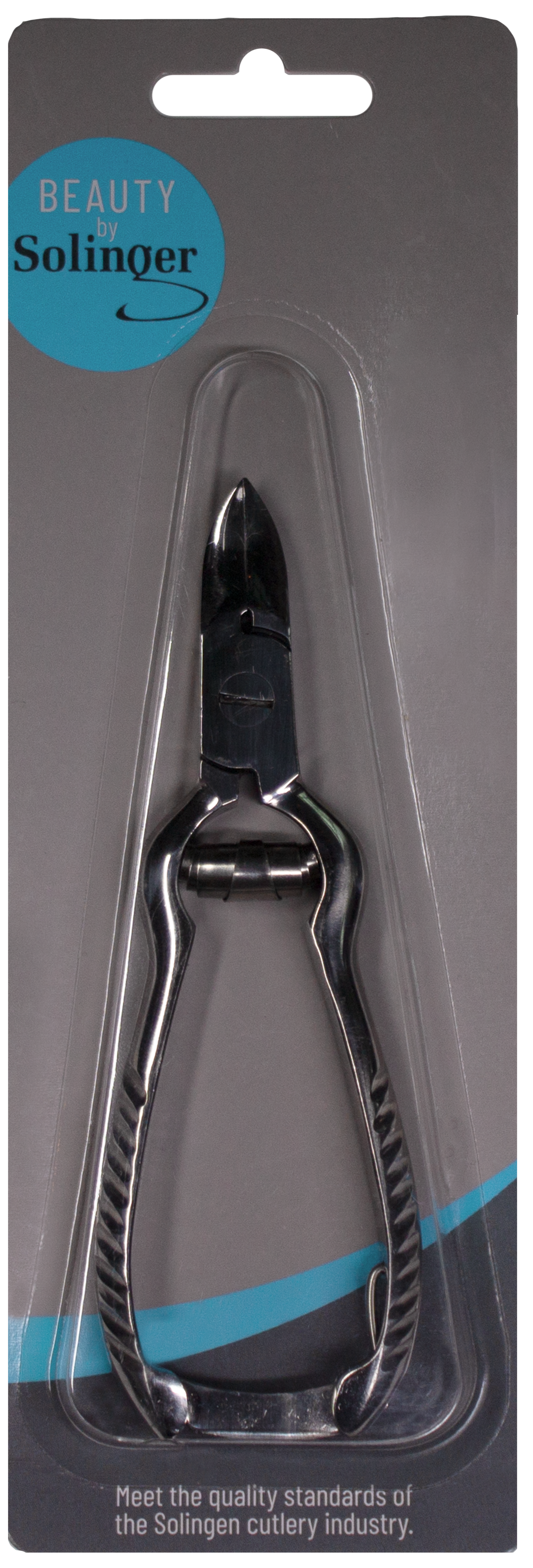 Nageltang gebogen met bufferveer is een onmisbaar hulpmiddel voor je pedicureverzorging. Gemaakt van hoogwaardig roestvaststaal zorgt dit product voor nauwkeurige en comfortabele verzorging. Door de bufferveer en de licht gebogen bek knip je de nagels nauwkeurig en moeiteloos. Het extra zware model is handig in gebruik bij hardere en/of kalknagels. Voor het beste resultaat knip je in kleine stukjes en volg je de natuurlijke vorm van je nagel. Knip de nagel niet te kort. Tip: Gebruik een 'Beauty by Solinger' puimsteenblokje voor het verwijderen van overtollig eelt voor nog mooiere en gezondere voeten.
