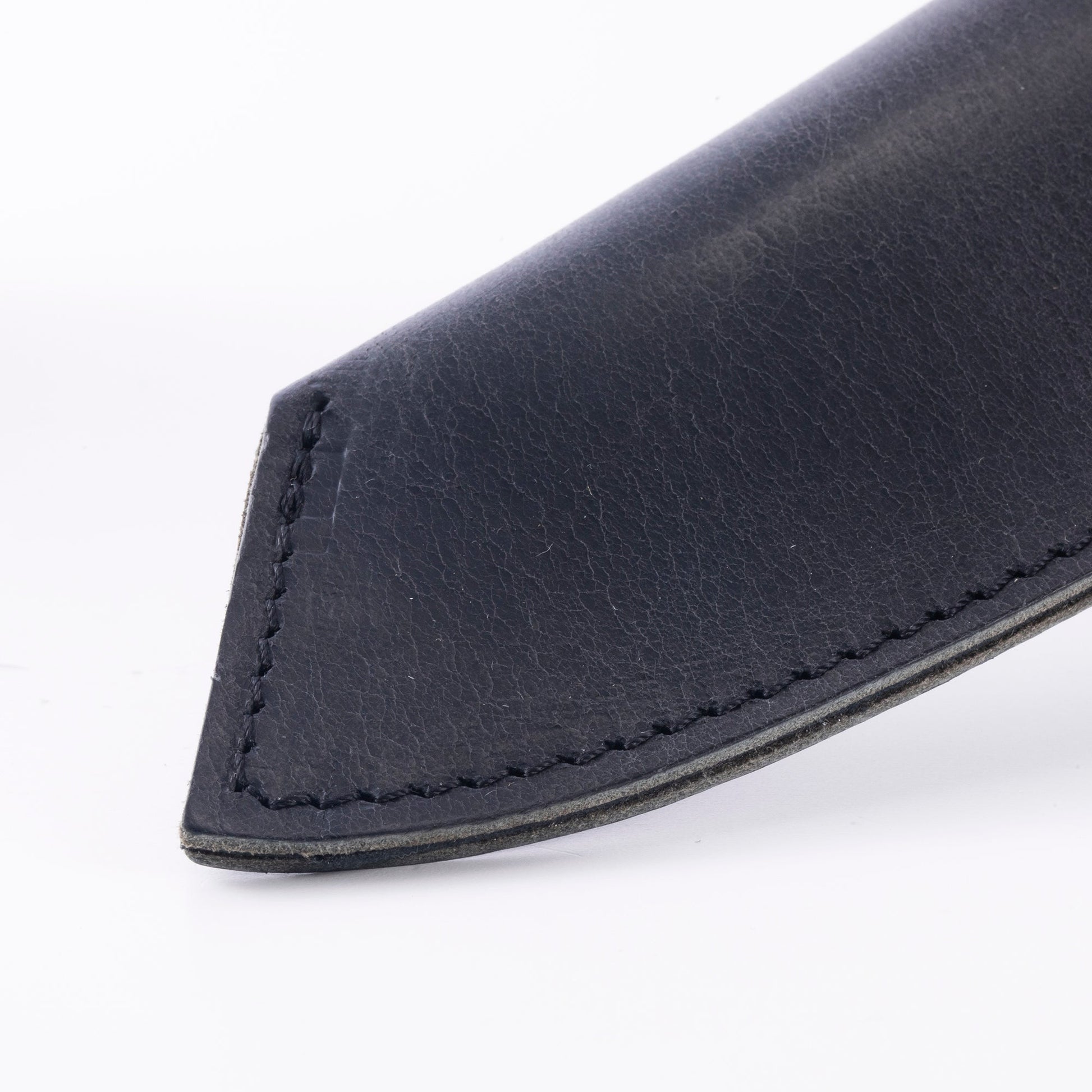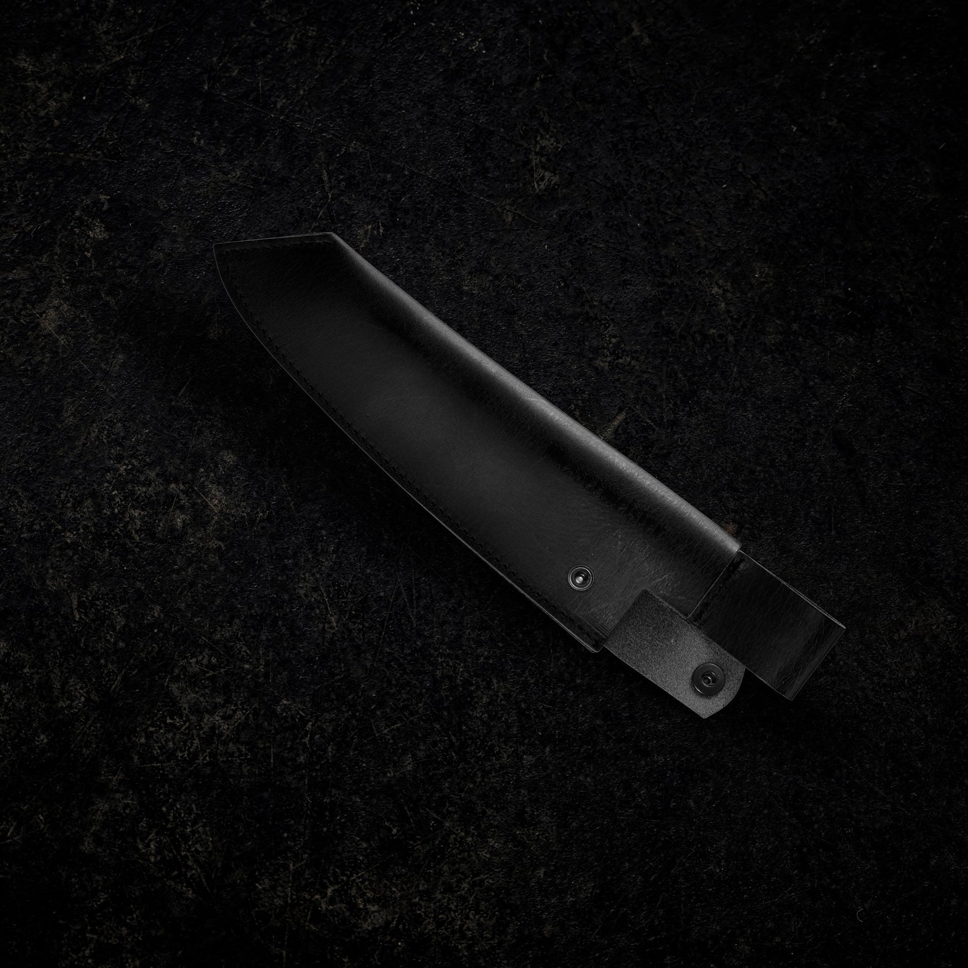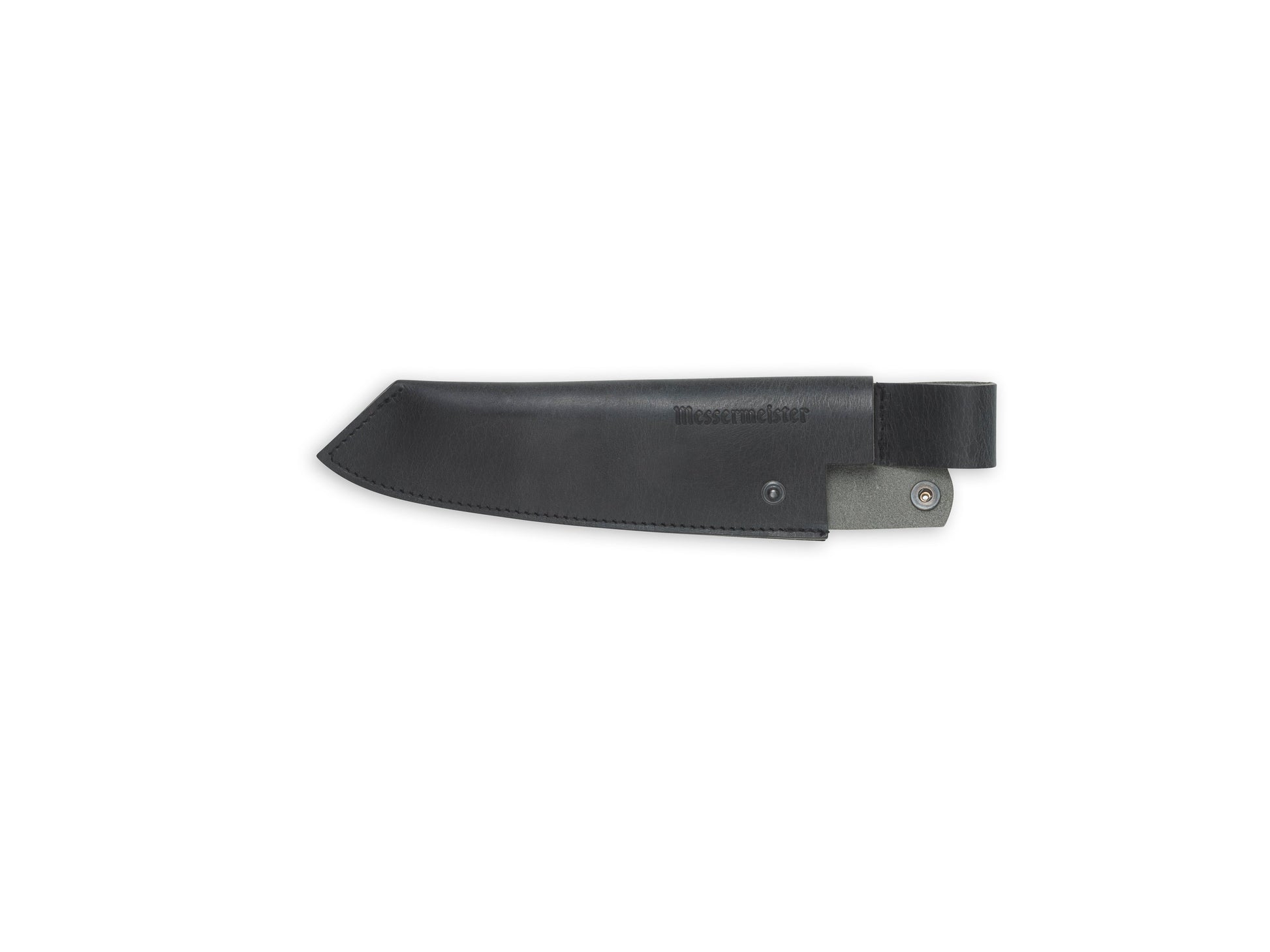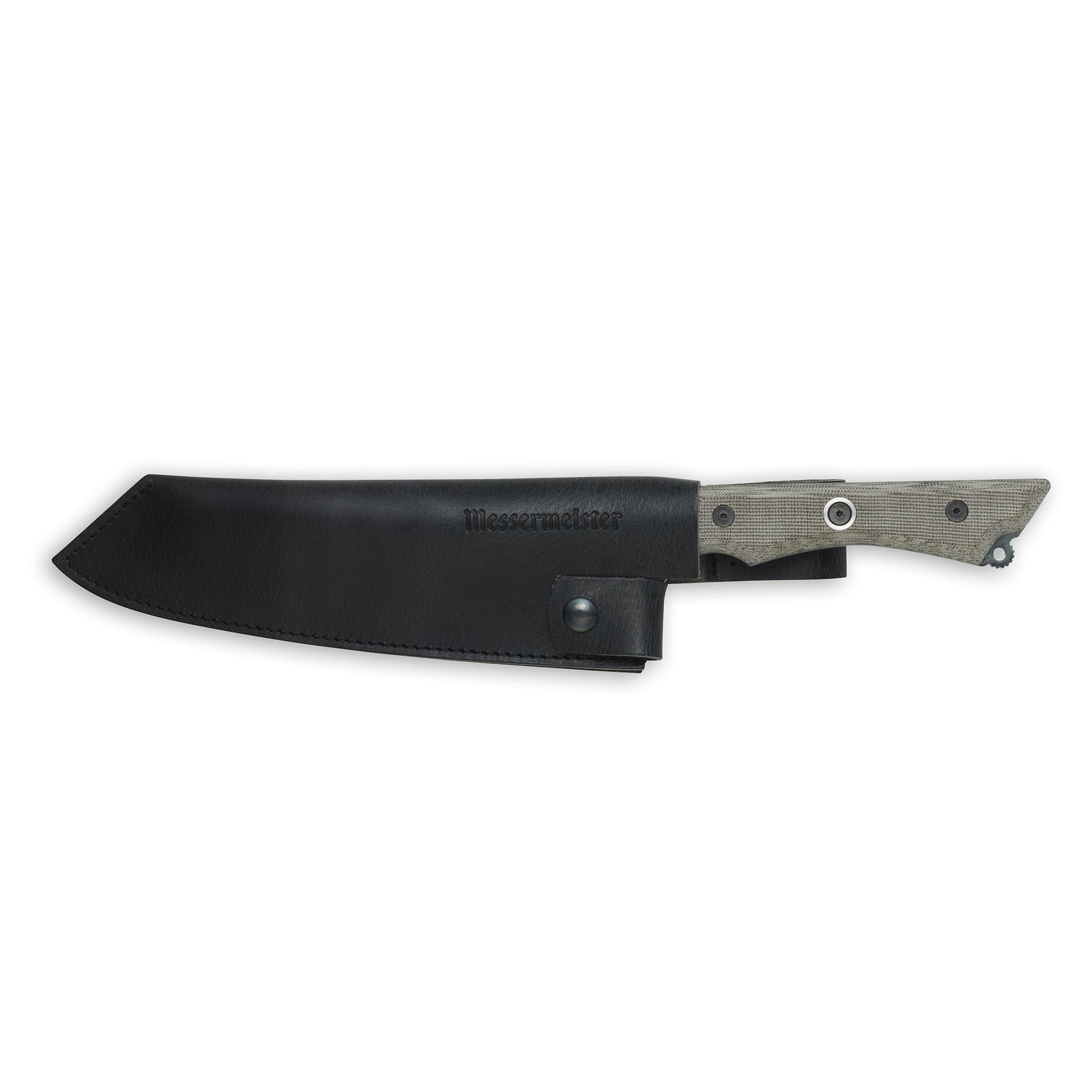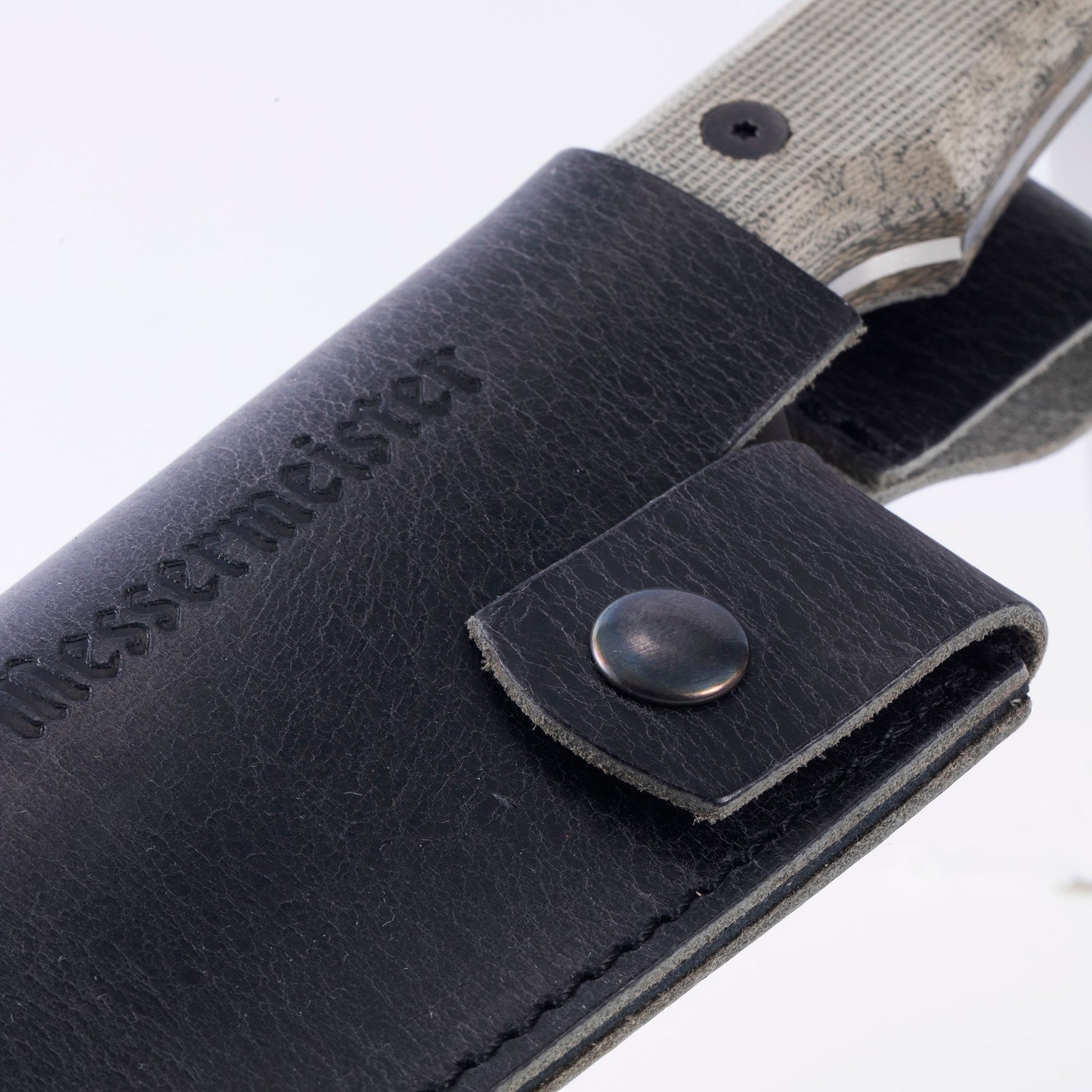 De MESSERMEISTER lederen meshouder is handgemaakt in Nederland van hoogwaardig, met olie gelooid volnerf leer met een rustieke, matzwarte afwerking. Elke meshouder is op maat gemaakt om het mes stevig vast te houden met een kliksluiting en een laaghangende riemlus. De messen op de foto's zijn niet bij de meshouder inbegrepen.