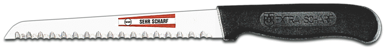 RöR Sehr Scharf broodmes RVS fijn gekarteld lemmet 20cm kunststof PP zwart antislip heft