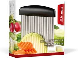 Met de professionele TRIANGLE golfsnijder kunt u in een soepele beweging mooie golven snijden uit boter, groenten en fruit. Probeert u ook eens decoratieve plakjes boter te snijden voor bij het ontbijt of snij zelf ribbelchips uit aardappelen. De golfsnijder van Triangle is gemaakt van roestvrijstaal. - boter - aardappel - wortel - courgette - komkommer - radijs - ribbel chips -